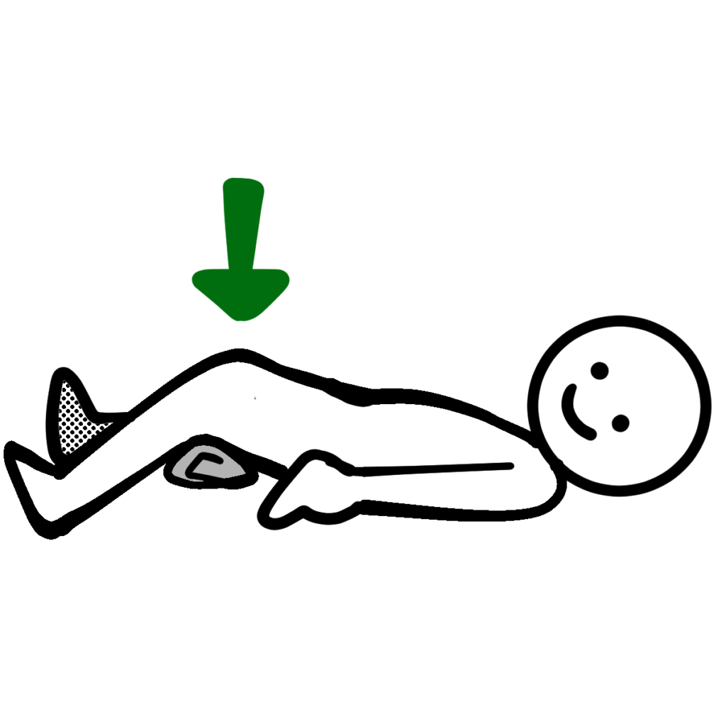 - 膝裏にクッションを入れて床に押し付けるように膝に力を入れる